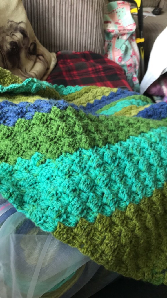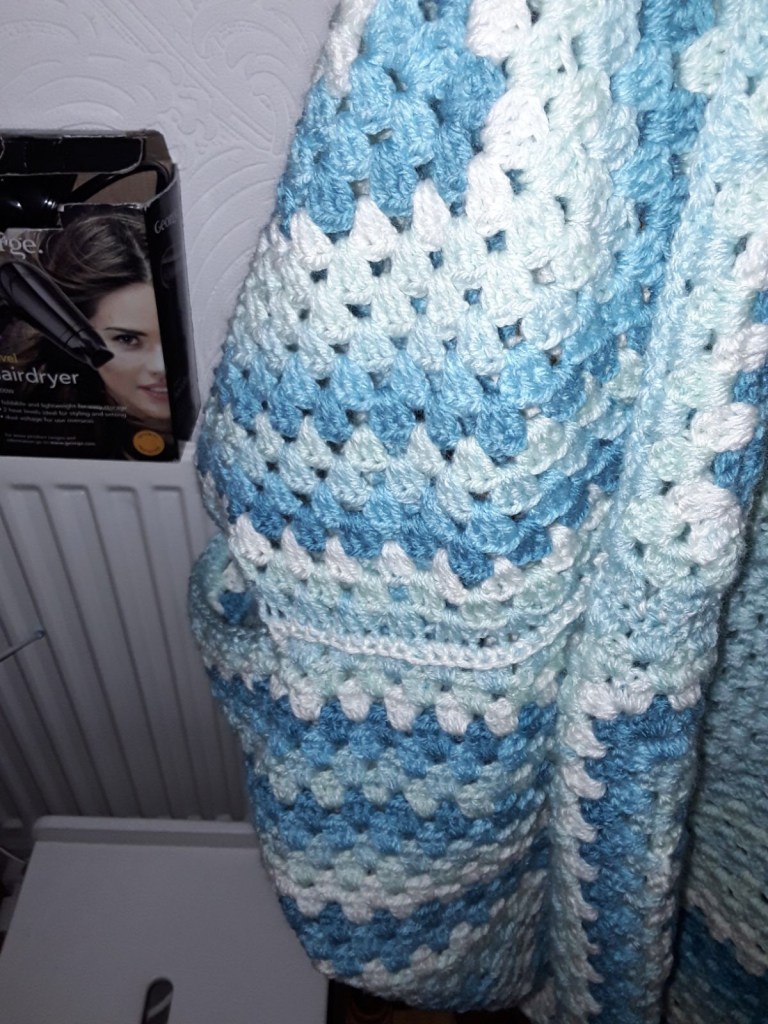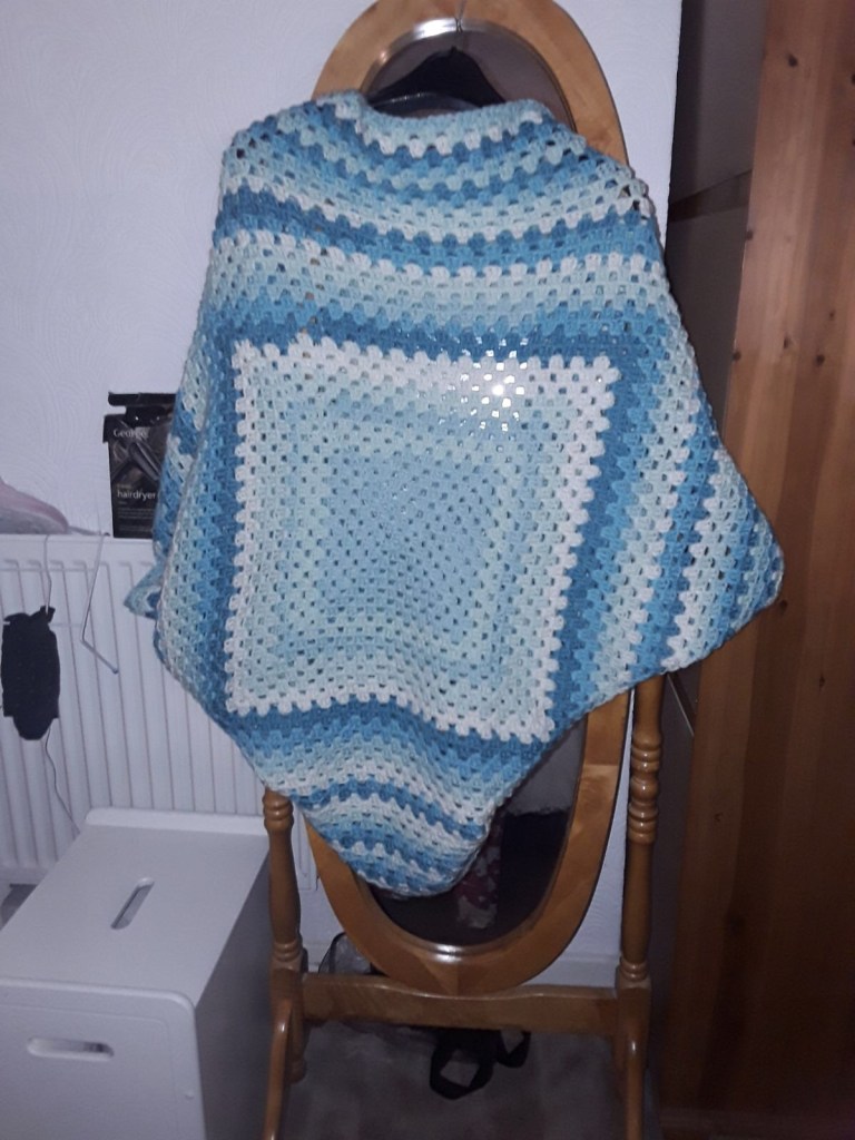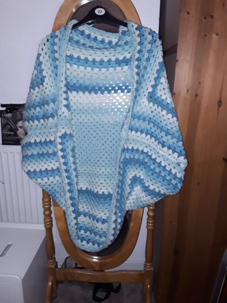 To be honest it wasn’t I lied has I hadn’t mastered the virus shawl stitch yet, after many attempts I finally mastered it and surprised my nanna with it in her favourite shade of blue.