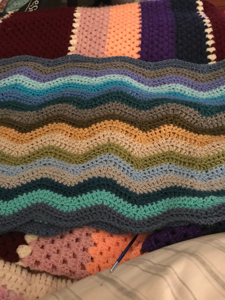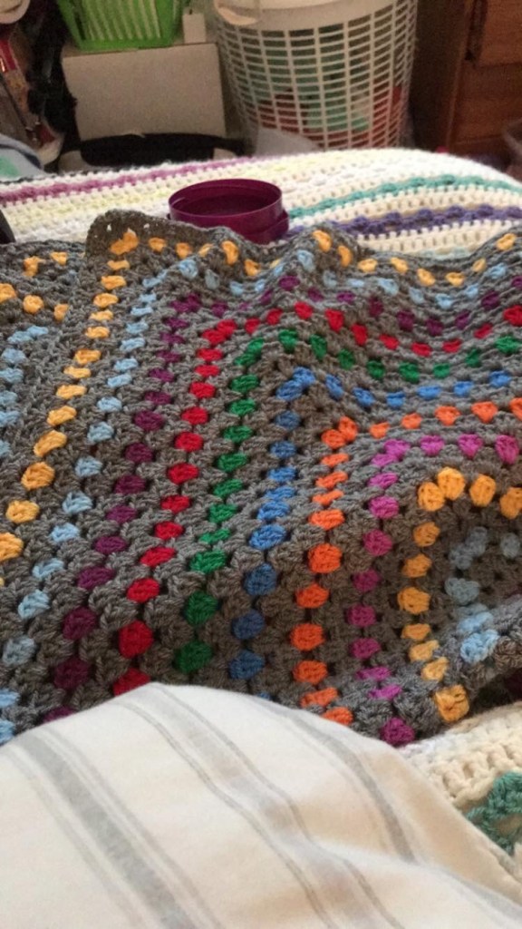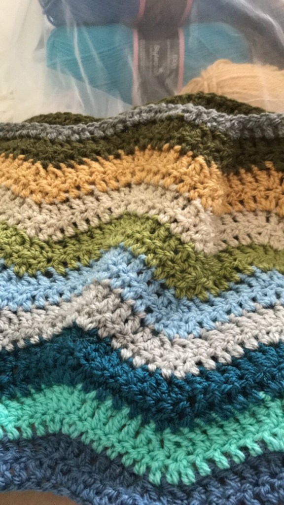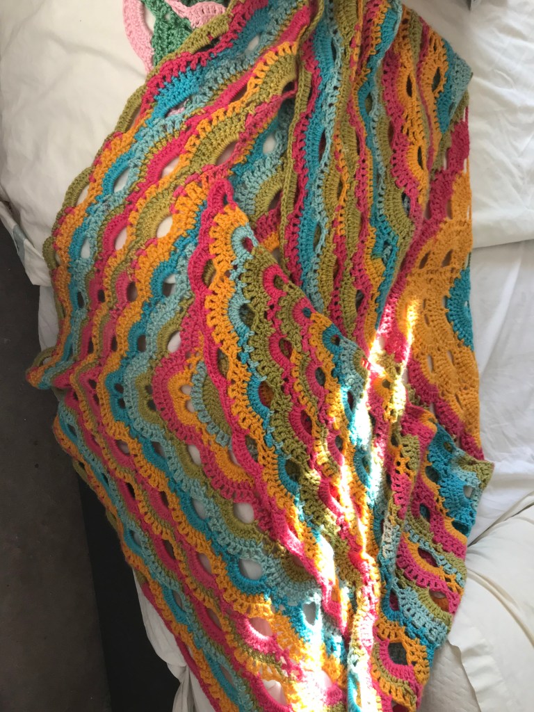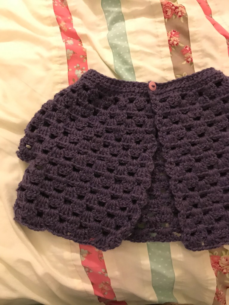 To be honest it wasn’t I lied has I hadn’t mastered the virus shawl stitch yet, after many attempts I finally mastered it and surprised my nanna with it in her favourite shade of blue.